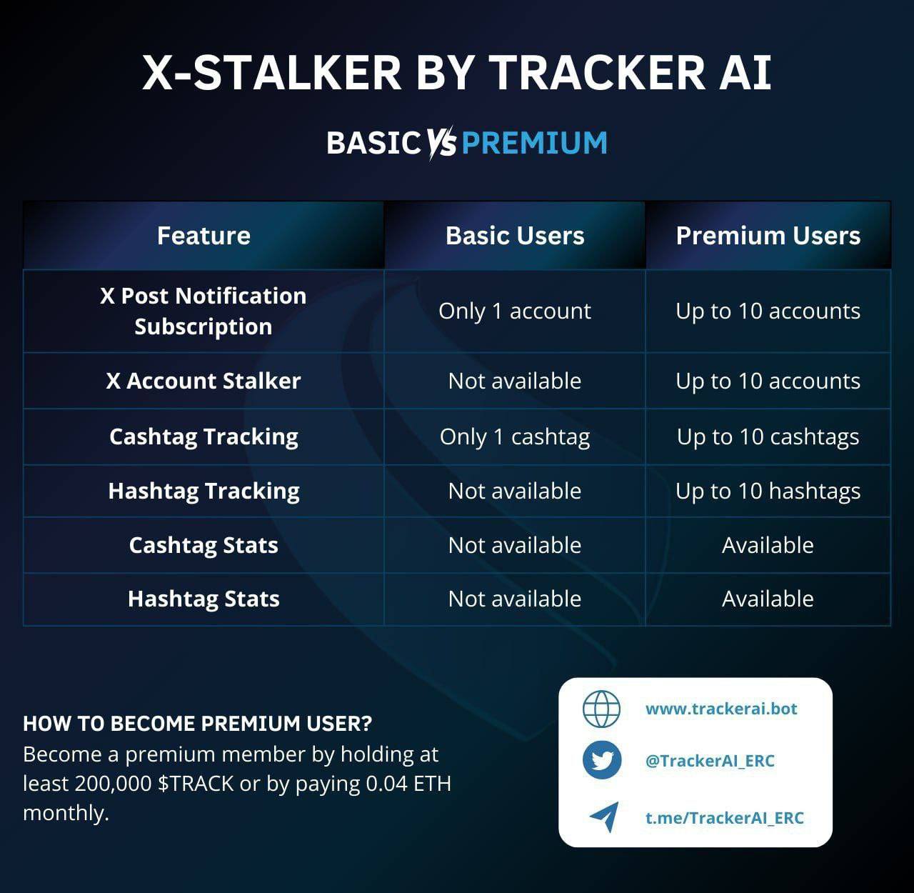 | Number of Wallets Tracked per 24 hours            | 5             | Unlimited                           |